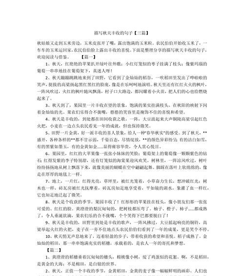 秋天,恍若一位美丽的女子,婀娜多姿,温柔优雅。它散发着淡淡的香气,仿佛是那沉静的湖水、薄雾般的晨曦和枫叶的斑驳。每当夕阳西下,秋天的美丽又显露出来,它总是能让我们忘却繁杂的心事,沉浸在无尽的美好之中。本篇文章将以“秋天美景”为主题,呈现25个关于秋天的唯美短句,让人们感受到秋天的无限魅力。